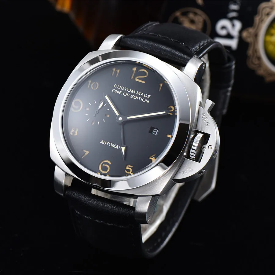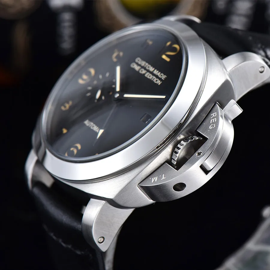 Cheap 44mm Men Automatic Mechanical Watch GMT Leather Strap Case luminous Sports military watch men P-C02